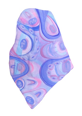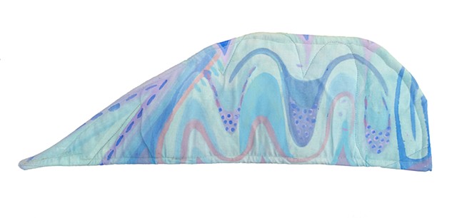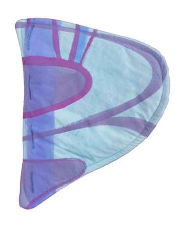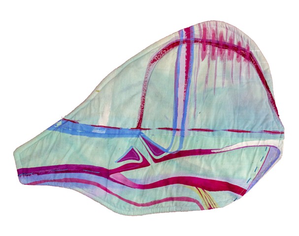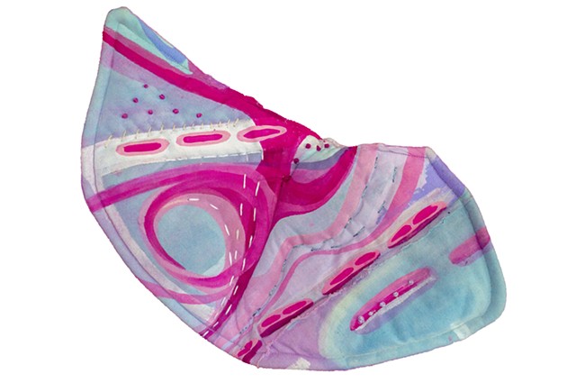 Acrylic, flashe, and embroidery thread on stuffed fabric